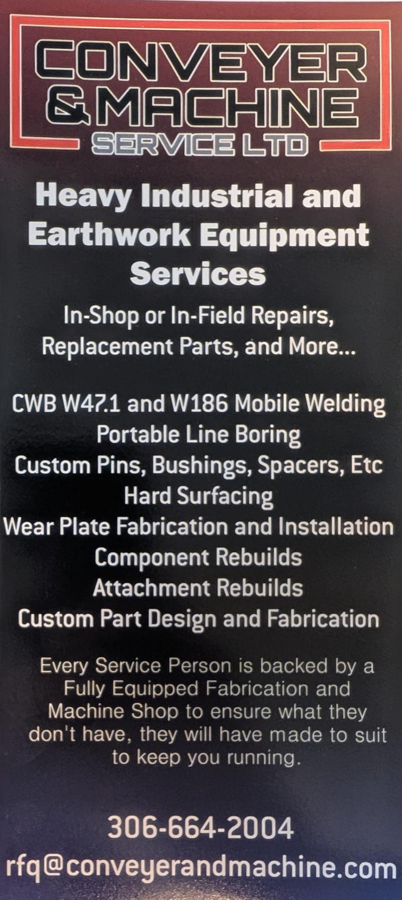 Conveyer and Machine Service Ltd is a full-service fabrication and machining shop with a 10,000 sq ft facility and 15-ton overhead crane capacity. We are CWB certified and specialize in structural steel fabrication, CNC machining and forming, mobile welding, custom bolts and threading, design services, structural and mechanical repairs, and custom part fabrication.